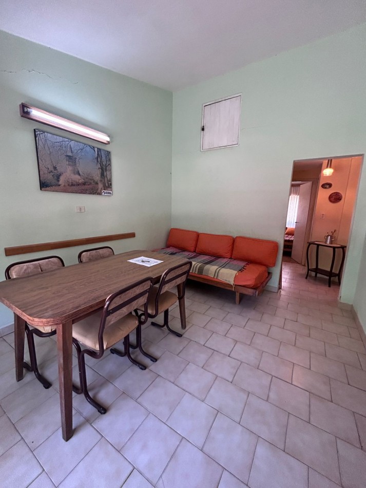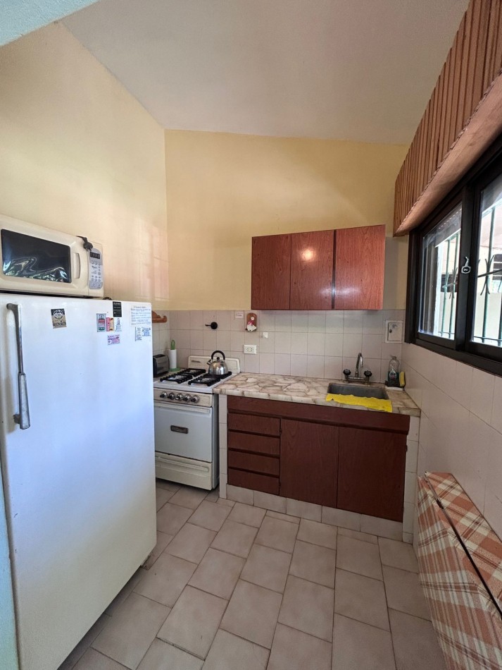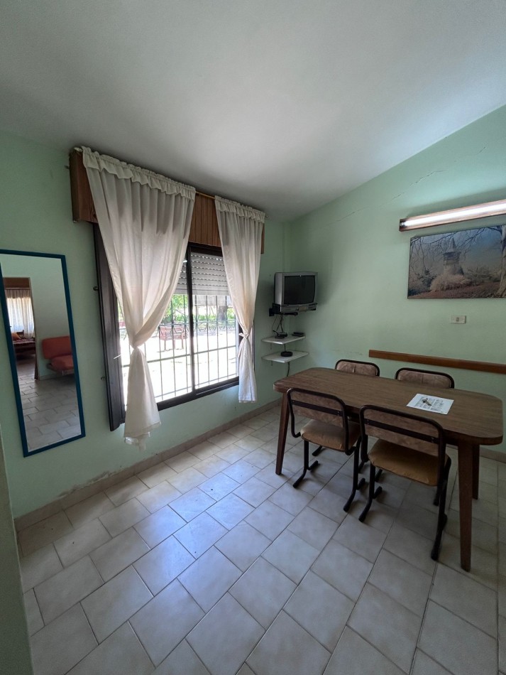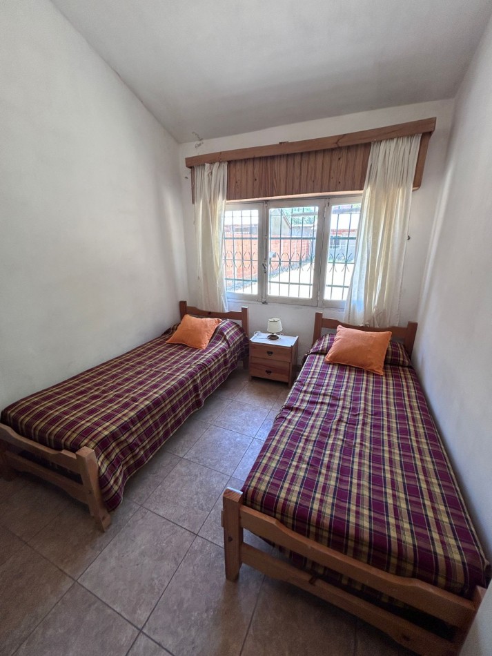 Para 5 personas: dormitorio matrimonial + dormitorio con dos camas simples y en el living comedor una cama simple. Cocina separada.
