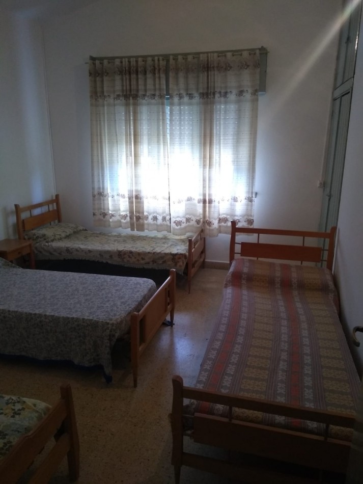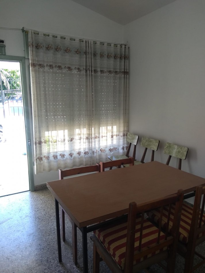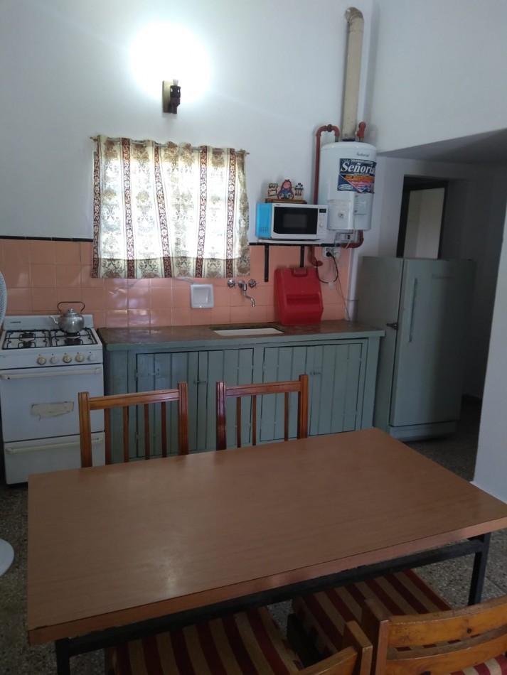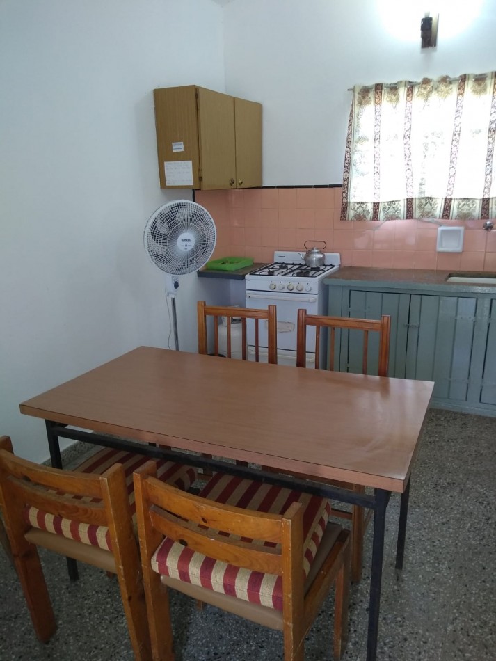 Para 6 personas: Dormitorio matrimonial y dormitorio con 4 camas simples. Cocina comedor. Amplio patio con jardín parrilla y espacio para guardar el auto.