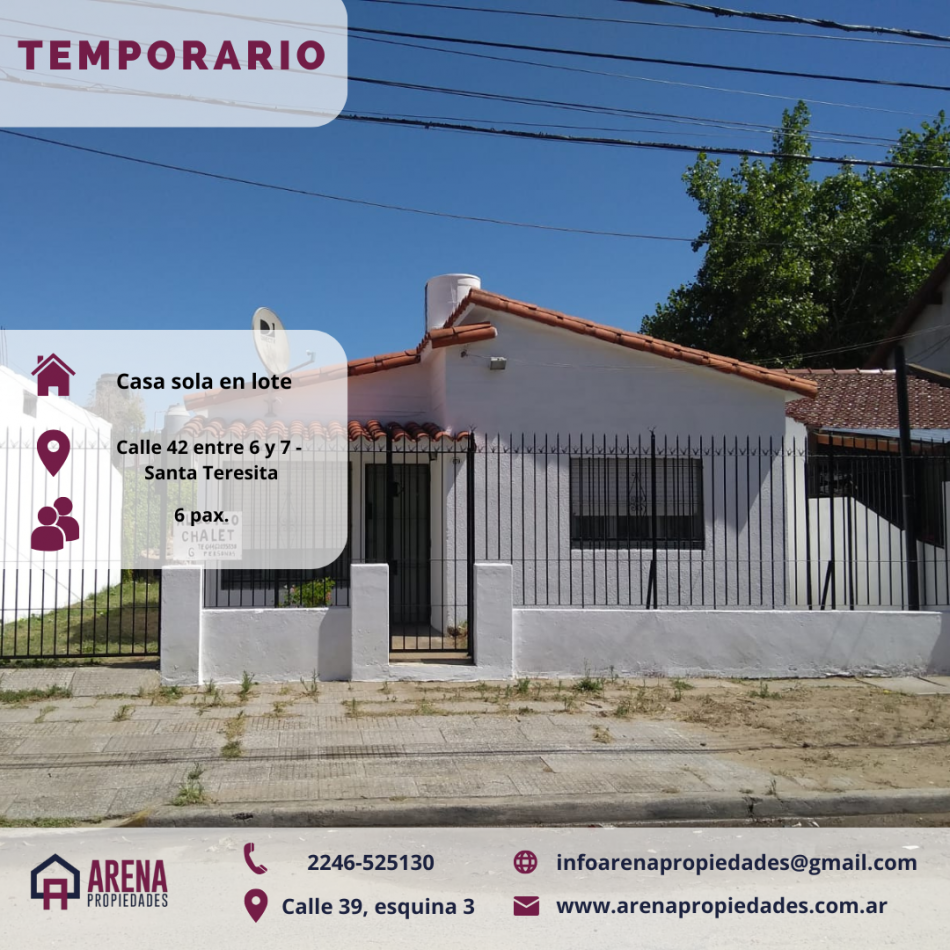 Alq temporario casa sola en lote