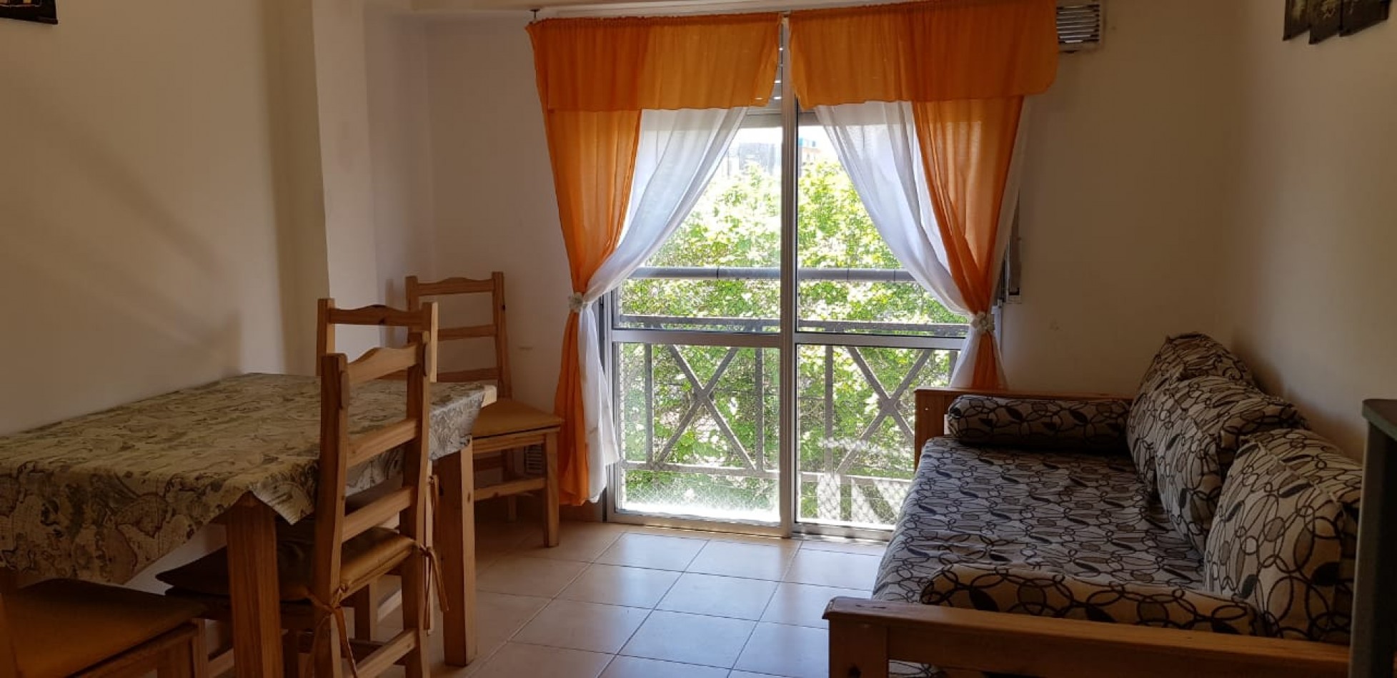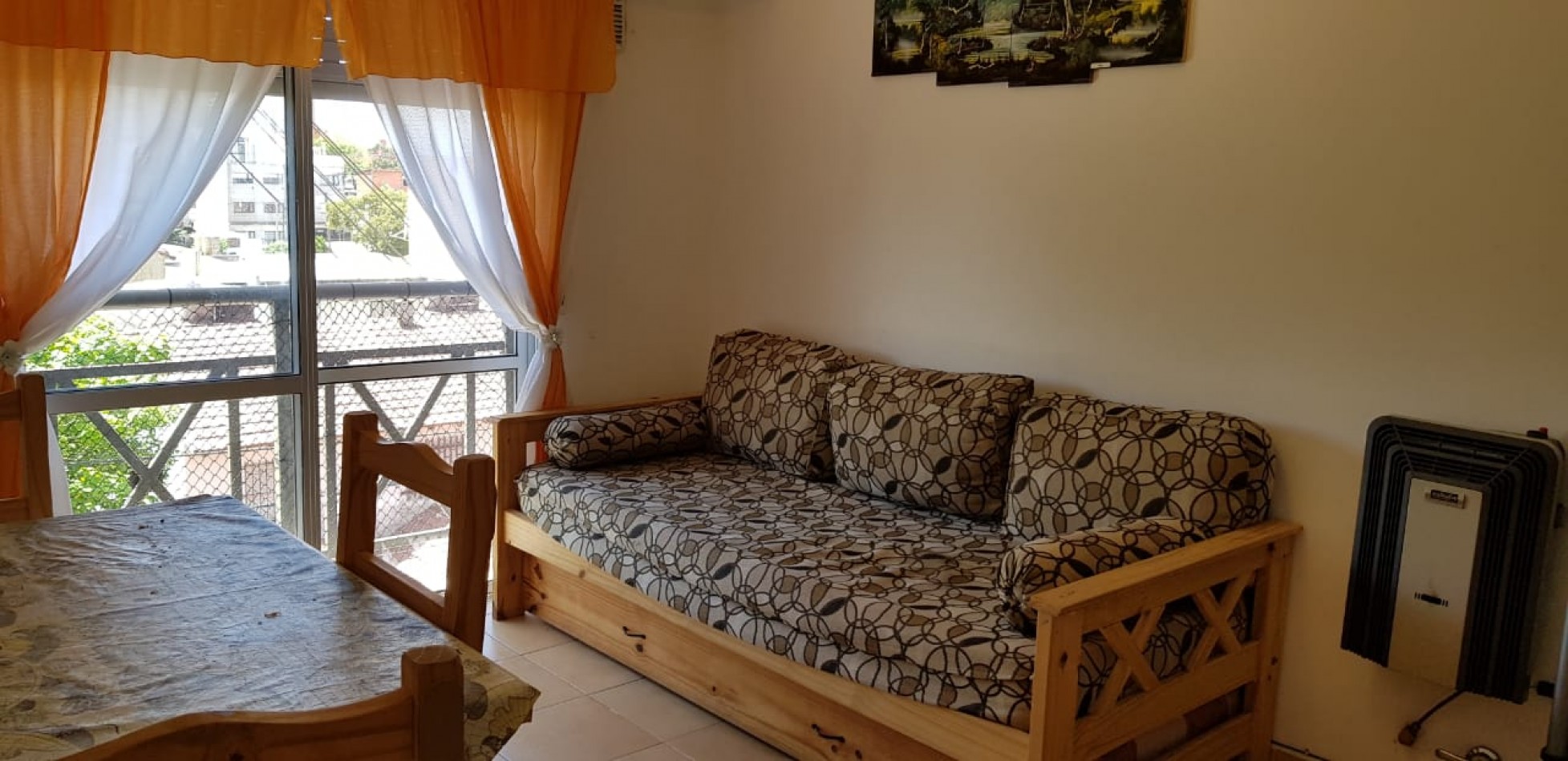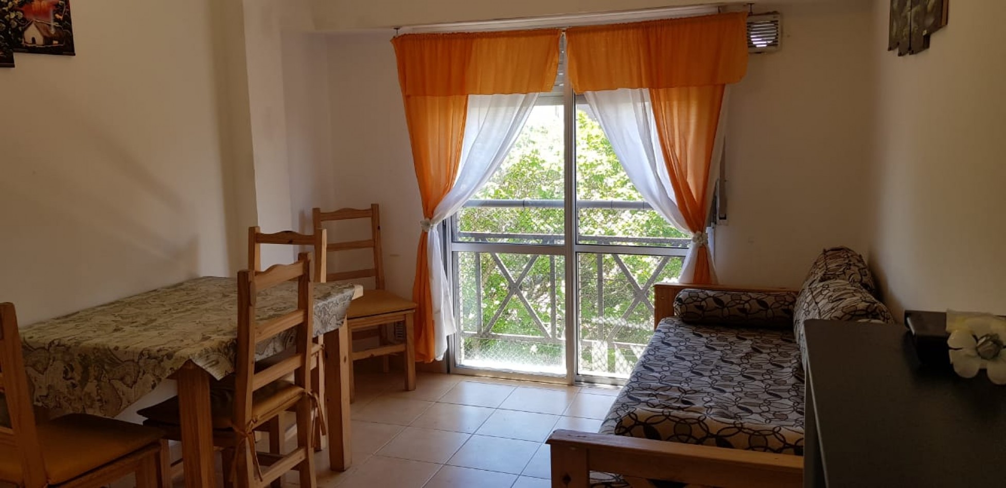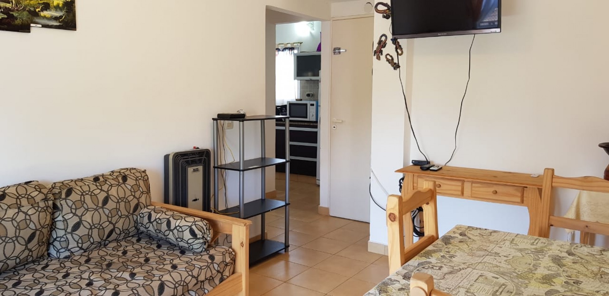 Para 4 personas: dormitorio matrimonial + living comedor con sofa cama y carrito + cocina separada.