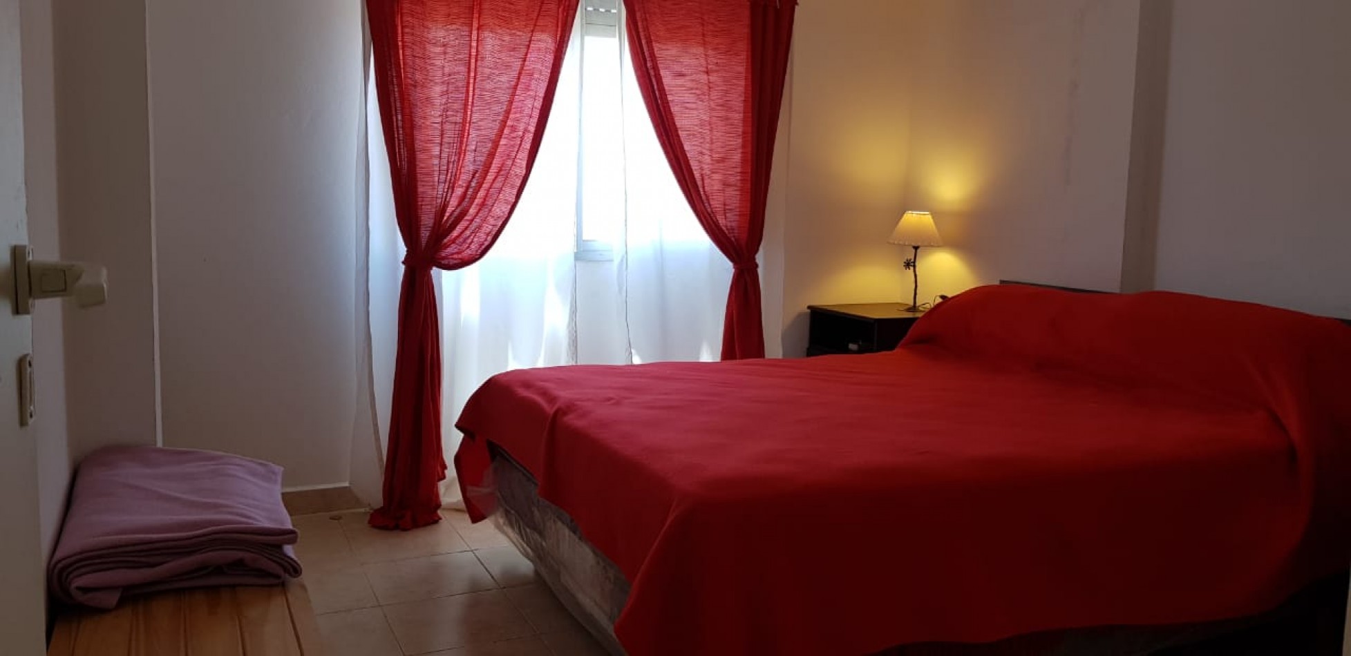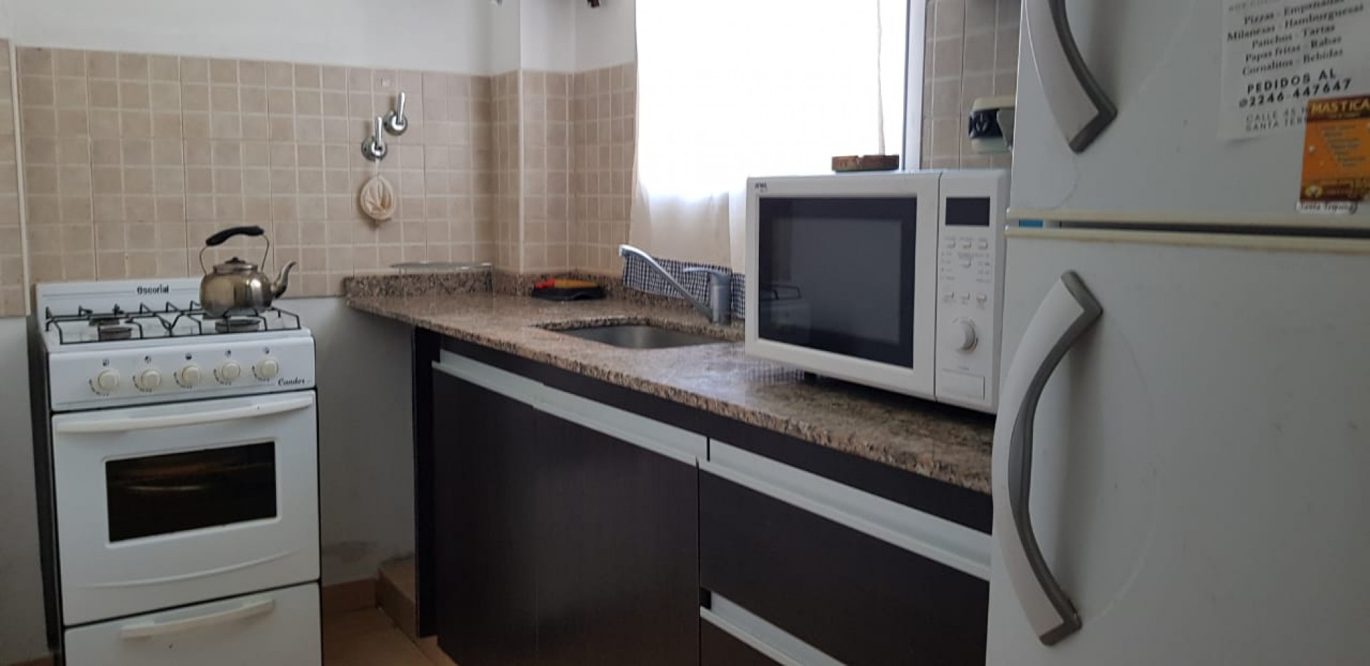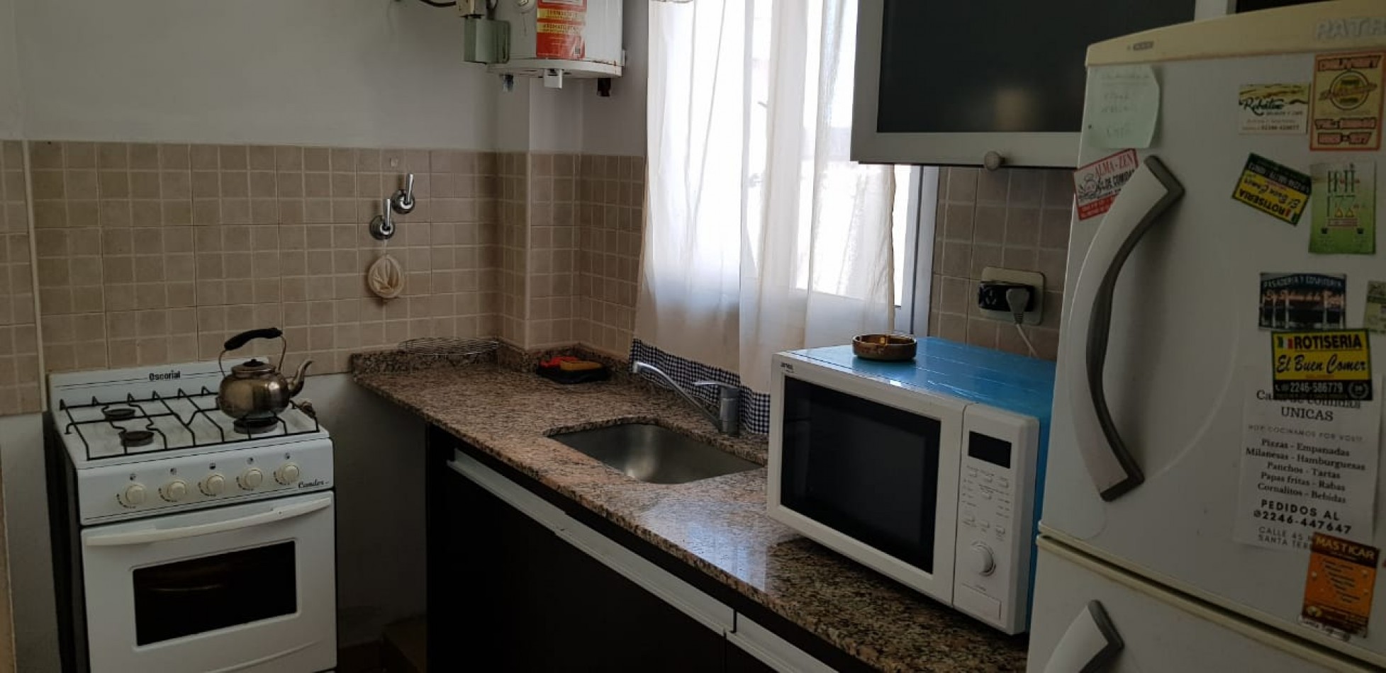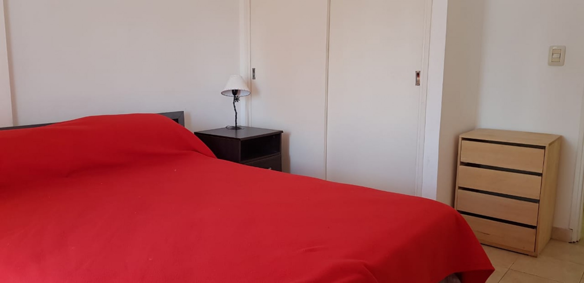 Para 4 personas: dormitorio matrimonial + living comedor con sofa cama y carrito + cocina separada.